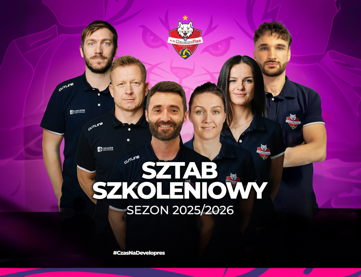 Przedstawiamy skład sztabu szkoleniowego KS DevelopRes Rzeszów na sezon 2025/2026. Nowy sezon to nowe wyzwania, a nasz zespół trenerski i organizacyjny został skompletowany z myślą o jak najwyższym poziomie przygotowania sportowego, mentalnego i fizycznego zawodniczek.